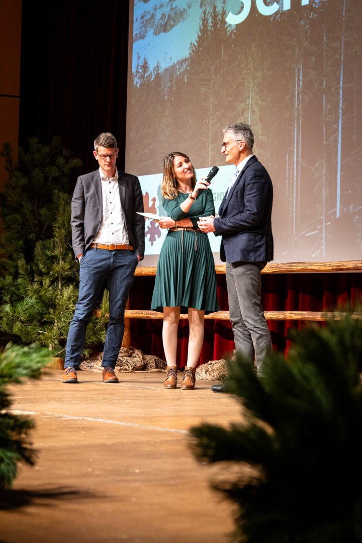 Das Forum in Brixen war gut besucht an diesem Freitagvormittag. Aus den verschiedenen ARGE-Ländern sind Vertreterinnen und Vertreter angereist, um an der Veranstaltung teilzunehmen. Der Präsident des Südtiroler Forstvereins, Christoph Hintner begrüßte das Publikum und die anwesenden Schutzwaldpaten. Im Anschluss gab Moderatorin Magdalena Oberstaller den Startschuss für eine bunte und abwechslungsreiche Veranstaltung. Dazu gehörten lebendige Videopräsentationen, bereichernde Diskussionen sowie abwechslungsreiche Projekte zum Thema Schutzwald. Die Musikgruppe Frisch g’strichn sowie die singenden Förster Eugen und Toni untermalten den Vormittag musikalisch. Alles in allem ein großer Erfolg. Am Ende der Veranstaltung kam es noch zur offiziellen Übergabe durch den Präsidenten des Südtiroler Forstvereines an dessen Kollegen aus Vorarlberg, wonach der Vorarlberger Waldverein mit der Verleihung des Schutzwaldpreises 2026 beauftragt wurde.